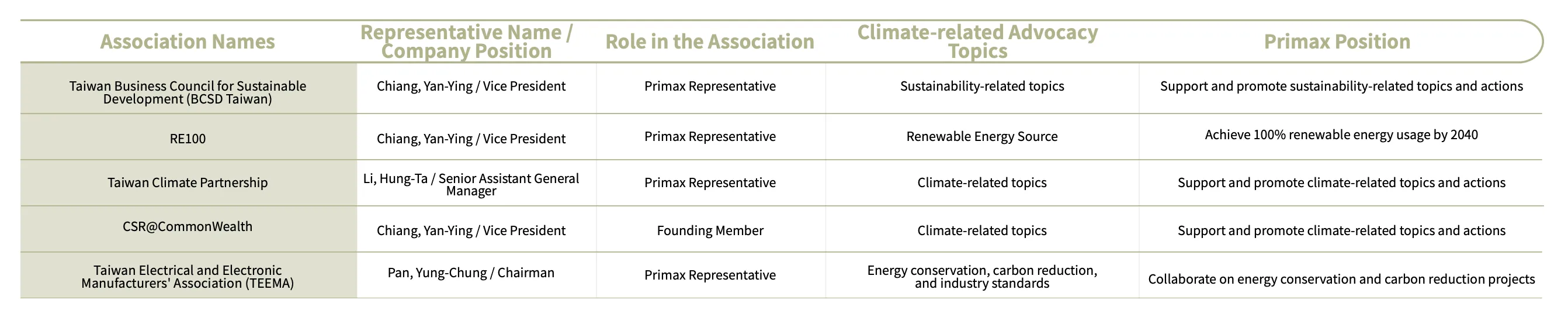 In response to climate change, Primax actively participates in international initiatives and engages in corporate sustainability and climate change activities. Additionally, to enhance our operations, expand focus areas, and comply with regulations, as well as to foster collaboration with business partners and talent development, we have joined various industry associations related to these issues. We maintain political neutrality, refraining from supporting any political party, movement, organization, or candidate. We do not participate in, encourage, or fund lobbying activities; all expenditures are dedicated solely to association membership fees or donations to tax-exempt organizations.
