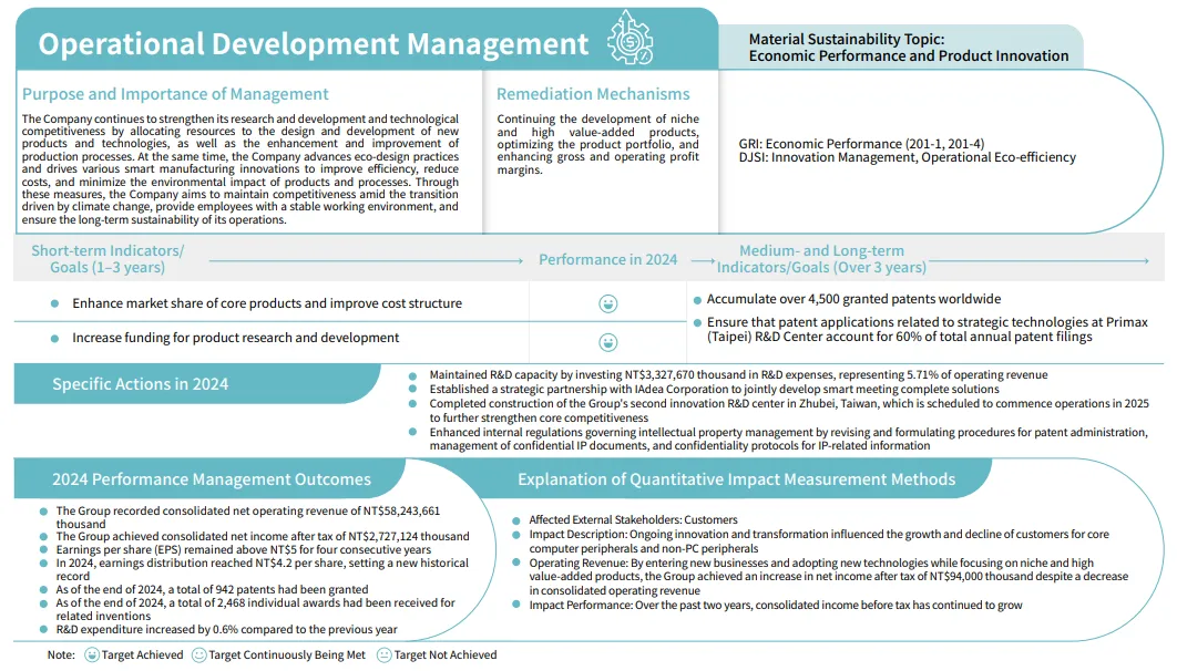 Management of operational development 【Material ESG issues: Economic performance, product innovation and development】