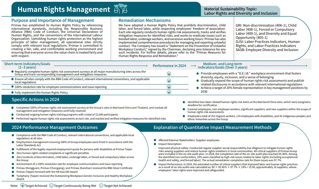 Human Right Management 【Material ESG Issues: Labor rights, diversity and equality】