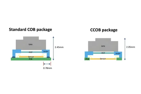 性能を損なわずに小型化を実現Holder-on-Chip(HOC)は、レンズホルダーをセンサー上に直接取り付けることで、カメラのX方向およびY方向のサイズを縮小します。その結果、スペース効率に優れたフットプリントを実現し、今日の超小型デバイスにも容易に組み込むことができます。