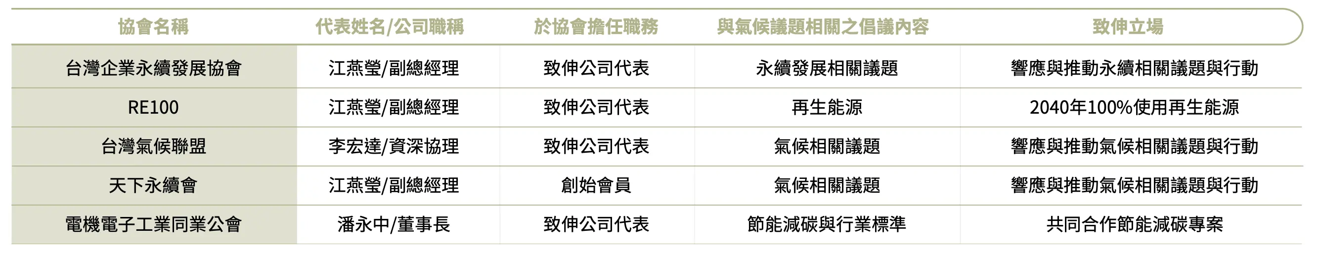 致伸因應氣候變遷議題,積極參與以下國際倡議、企業永續與氣候變遷活動。同時為了營運相關業務、拓展關注的領域,或是符合法規、商業夥伴交流及合作、人才培育等目標,加入相關議題的公協會。致伸政治上保持中立,不支持任何政黨、政治運動、組織或候選人;不參與、不鼓勵亦不為遊說提供資金,所有支出皆用於協會會費或免稅團體的捐贈。