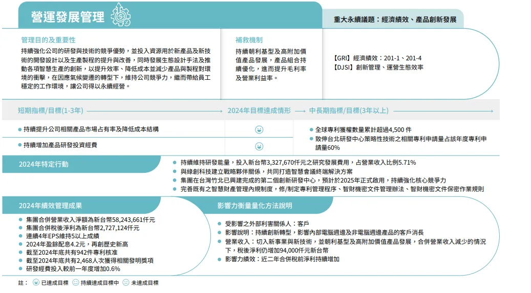 營運發展管理 【重大性議題:經濟績效、產品創新發展】