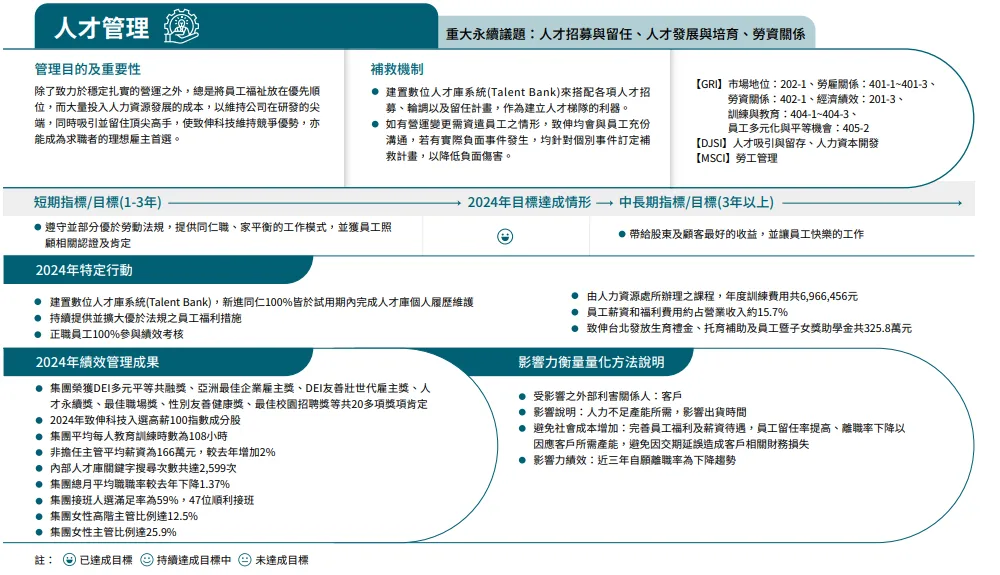 人才管理 【重大性議題:人才招募與留任、人才發展與培育、勞資關係】