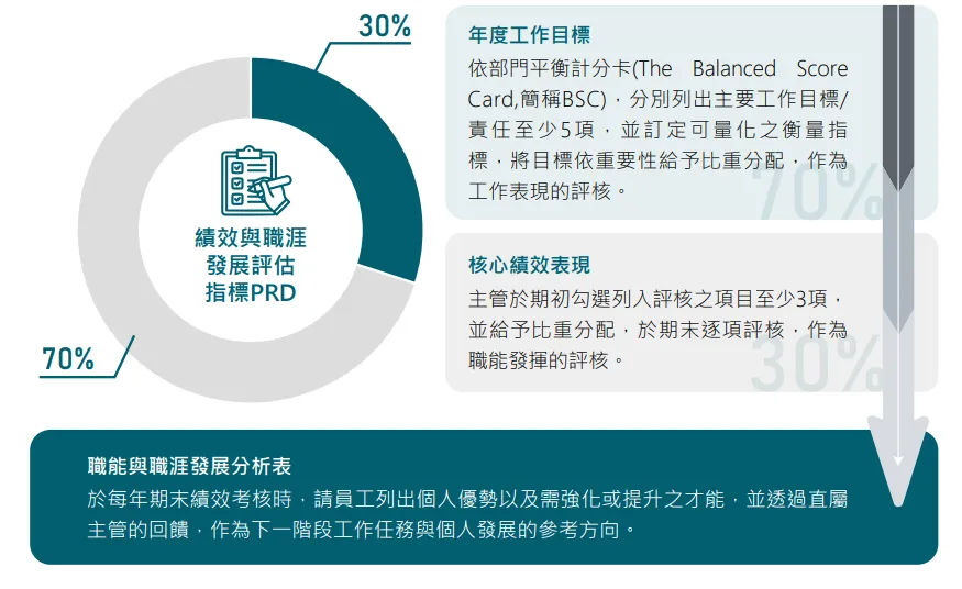 而2022總共完成92位人才發展計畫,其中有30位職務擴大,17位晉升。2024除了延續前一年的執行範圍,更是針對關鍵職位的接班狀況進行盤點,79個關鍵職位中,接班人選滿足率為59%,其中有47位在2024年底順利接班。2024年更是將人才發展機制內化成營運管理循環,每半年召開人才發展會議 跨事業單位檢視人才發展狀況,以加大潛力人才庫,以人才永續發展為目標