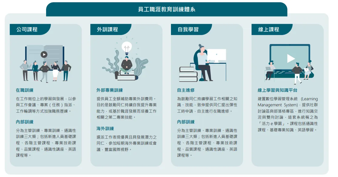 致伸科技之教育訓練學習與發展以職能為核心架構,緊密地與公司未來發展策略與目標結合,訓練體系分為以下三大類: